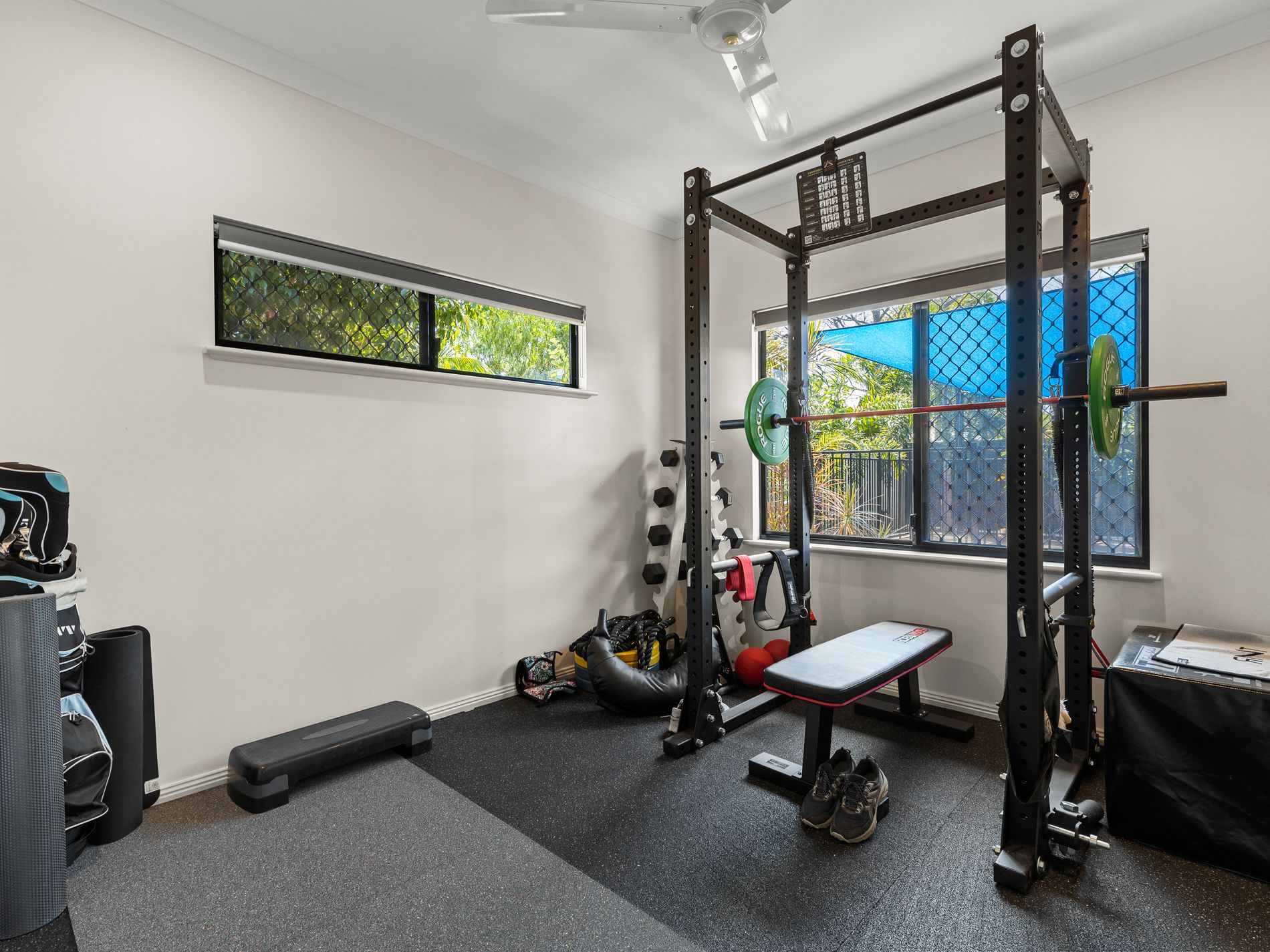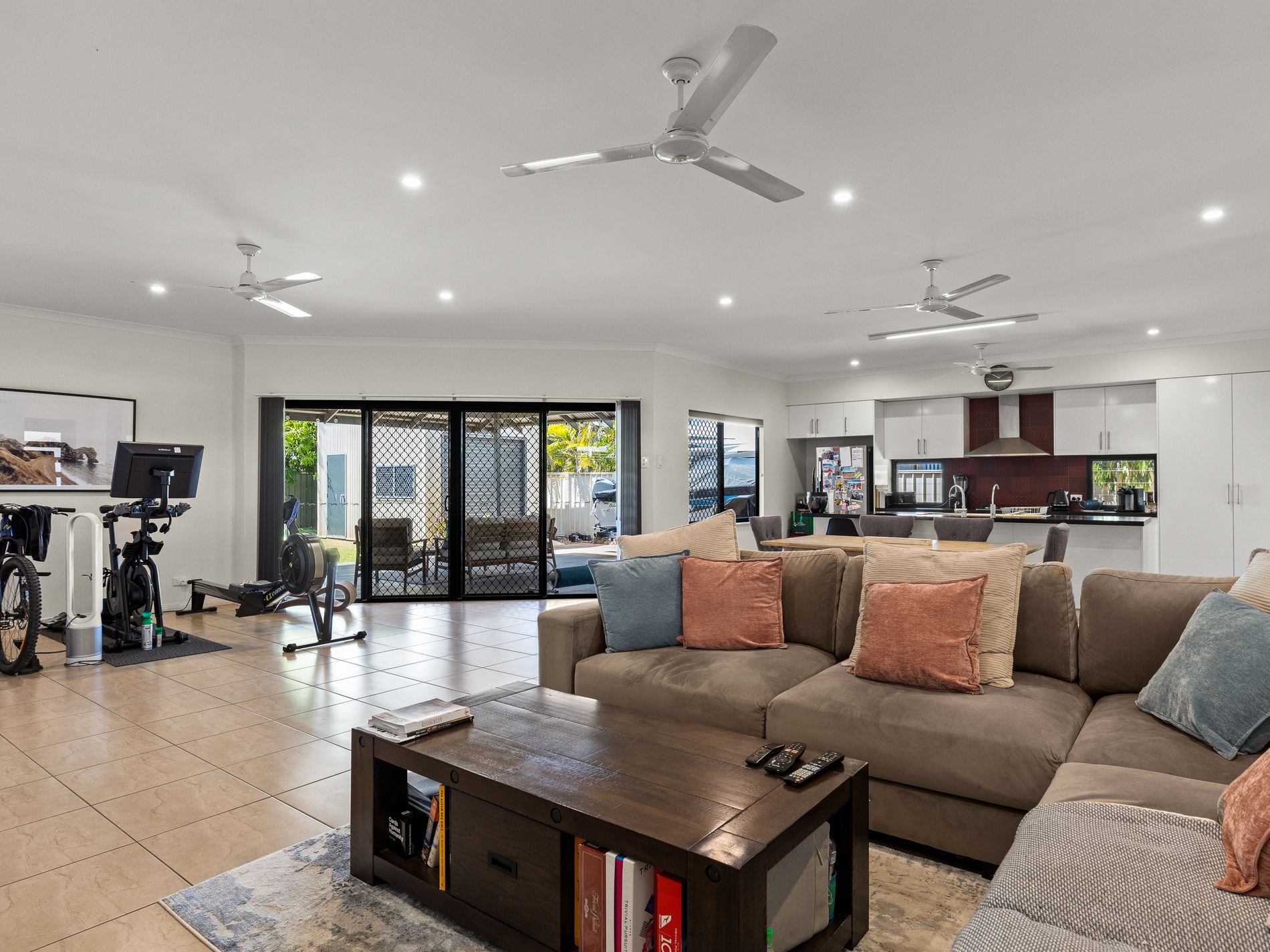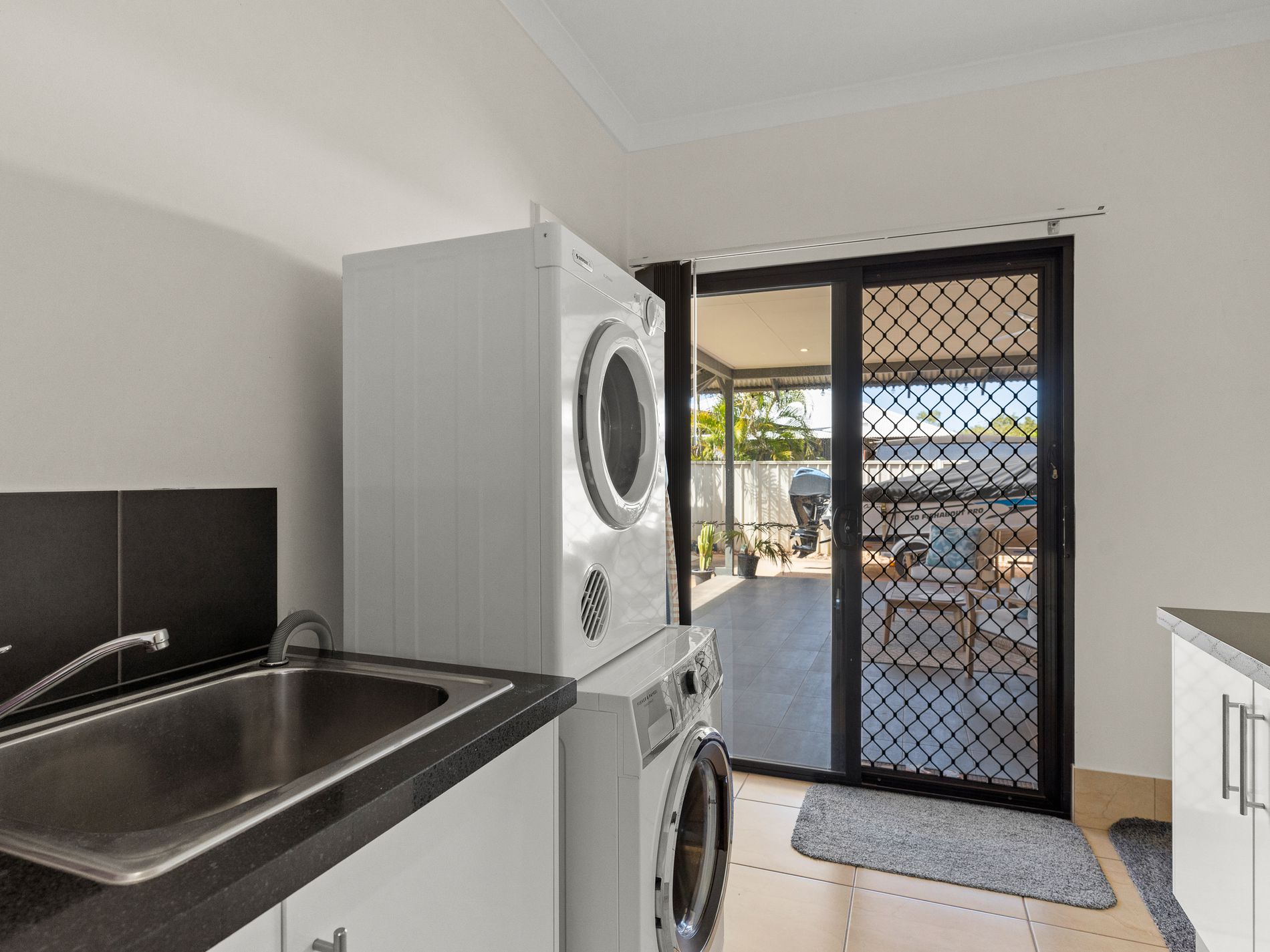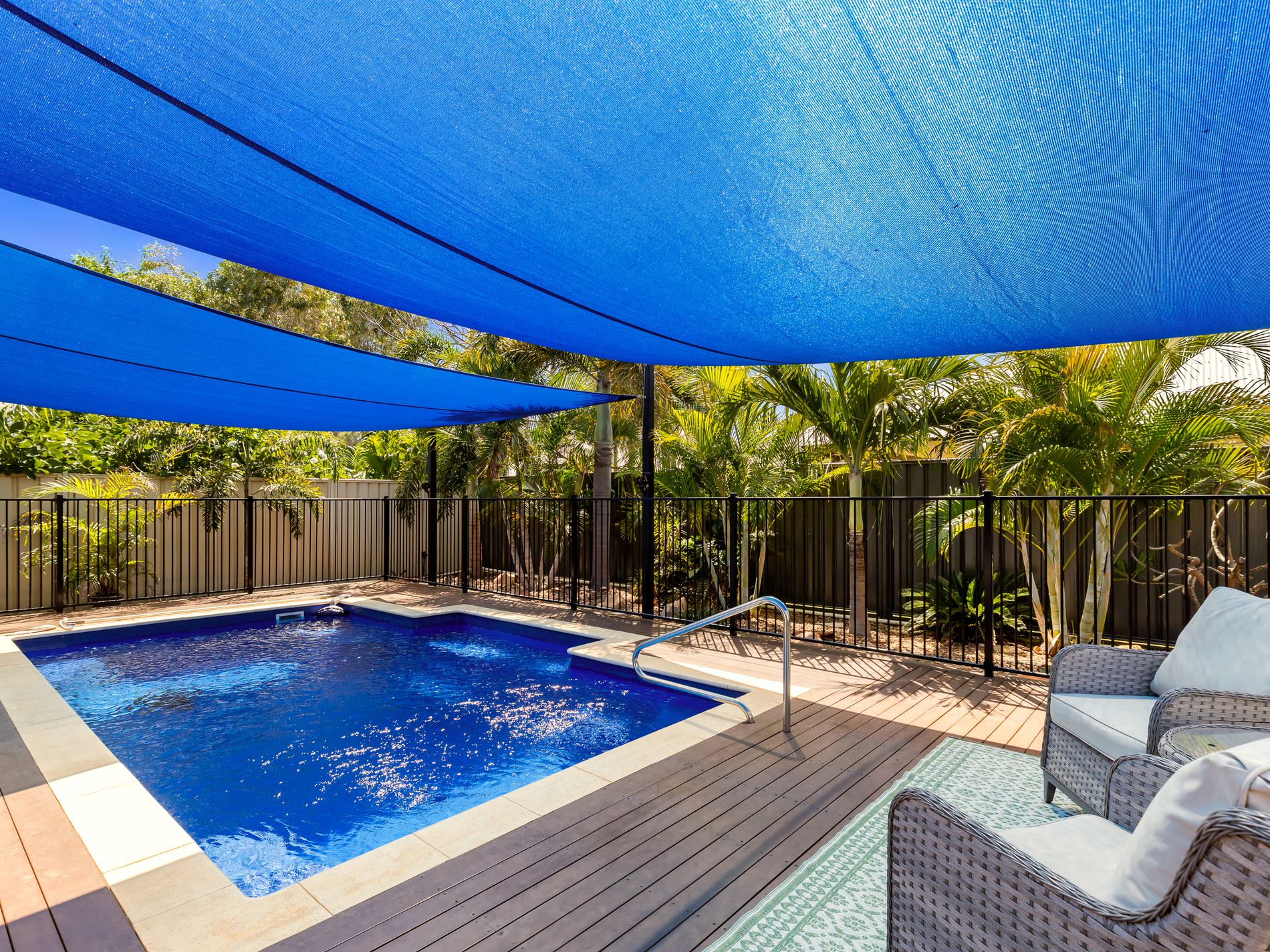 Outdoors is where this residence stands apart. The sparkling pool is framed by expansive timber decking and surrounded by established tropical gardens, with a mature mango tree adding a touch of Broome character.